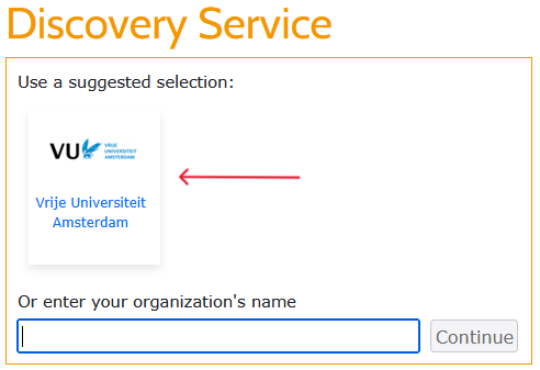 vrije universiteit amsterdam, select the entry that appears and clickContinue